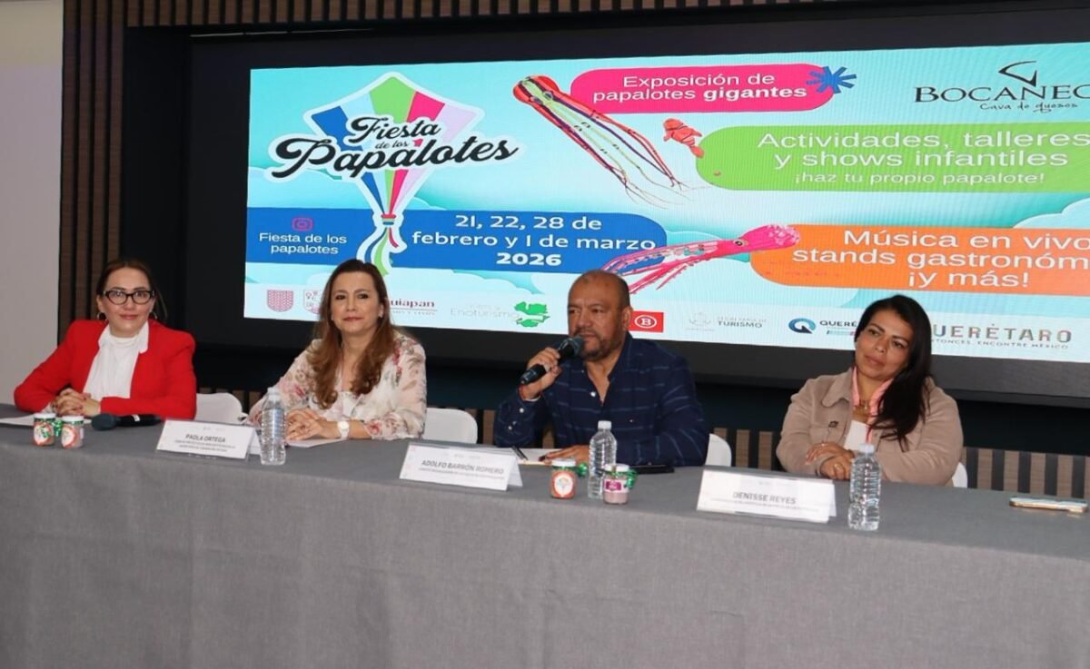 La líder de Proyectos de Promoción Turística de la Secretaría de Turismo del estado, Paola Ortega Muñoz, anunció junto a organizadores, la nueva edición del Festival del Papalote en Tequisquiapan, un evento recreativo y cultural que reunirá a familias, niñas, niños, jóvenes, emprendedores y visitantes en un entorno al aire libre.