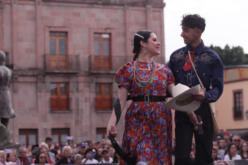 Durante la presentación de la Coreografía Monumental de Huapango, que se llevó a cabo en el Jardín Guerrero de la capital queretana, evento con el que dio arranque formal el Festival, la funcionaria indicó que del 16 al 19 de octubre el municipio de Jalpan de Serra será la sede principal del encuentro donde las y los portadores del valioso legado de los seis estados de la Huasteca compartirán sus saberes y sus expresiones más auténticas.