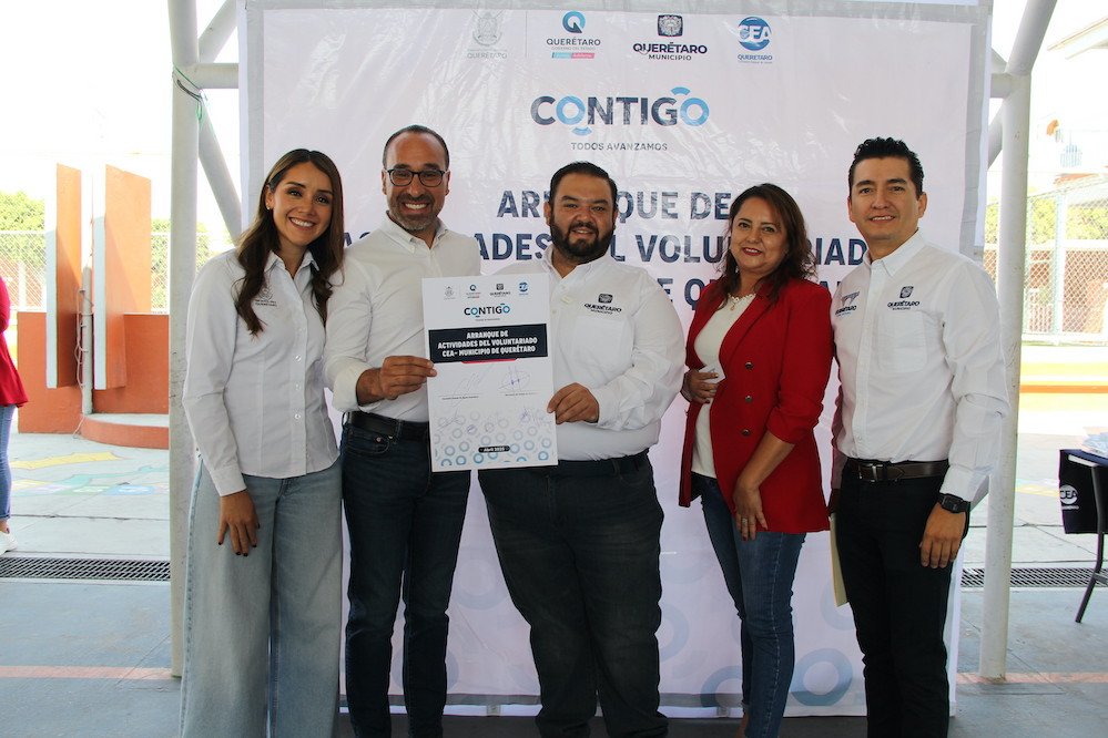 El director general adjunto de Enlace Institucional de la Comisión Estatal de Aguas (CEA), Jorge Ortega González, en representación del vocal ejecutivo, Luis Alberto Vega Ricoy, junto con el secretario de Desarrollo Social del Municipio de Querétaro, Juan José Ojeda Dorantes, encabezaron el arranque de actividades conjuntas entre el Voluntariado del Municipio de Querétaro y el organismo estatal, acto que se llevó a cabo en la Primaria “Noo Botsi Di Nxodi”, ubicada en el Fracc. Villas de Santiago.