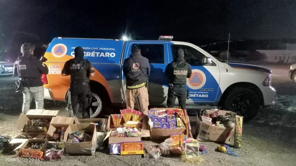 El Municipio de Querétaro intensifica acciones para combatir la venta y uso de pirotecnia ilegal, logrando el aseguramiento de 350 kilogramos de productos explosivos en la zona de Santa Rosa Jáuregui. Estas acciones fueron encabezadas por la Coordinación Municipal de Protección Civil (CMPCQ) y la Secretaría de Seguridad Pública Municipal (SSPM), en coordinación con la Guardia Nacional y con apoyo de reportes ciudadanos.