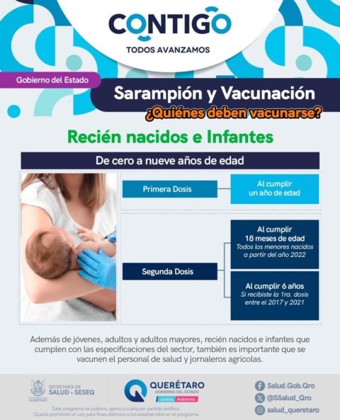 La Secretaría de Salud (SESA) del estado de Querétaro informa que, tras la detección del primer caso de sarampión en el país en febrero de 2025, se reforzaron de manera