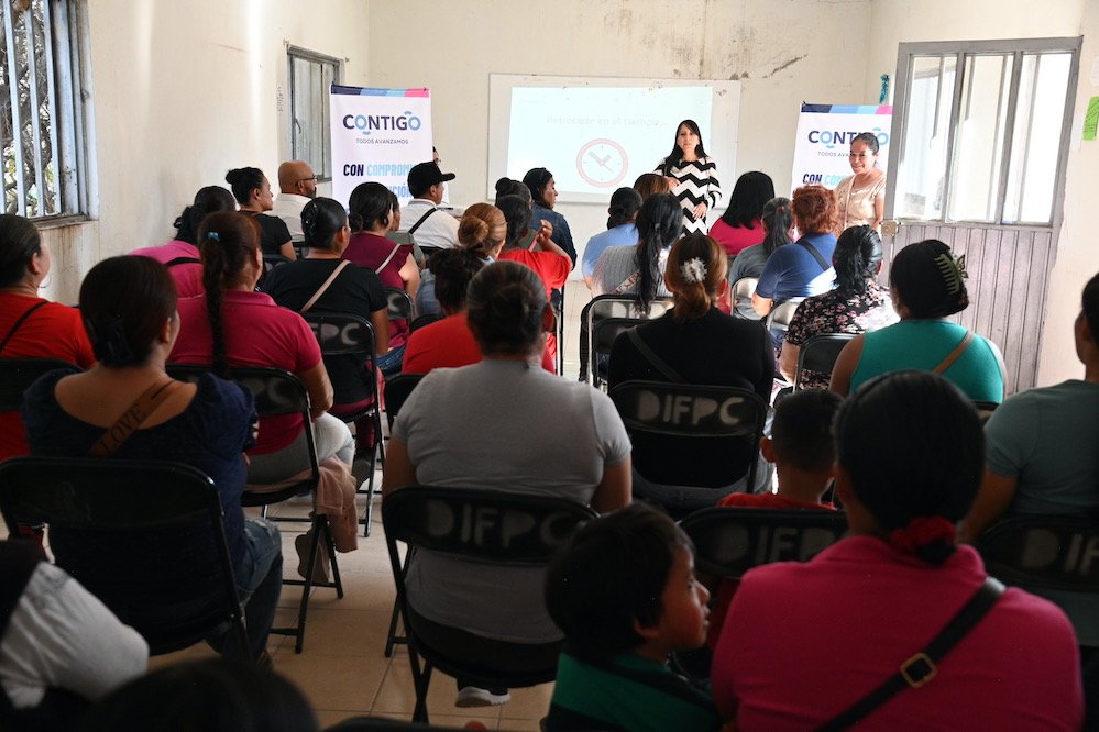Además, en colaboración con la Secretaría de las Mujeres, se impartieron charlas dirigidas a promover valores familiares, impulsar la equidad de género y fortalecer la sana convivencia, en el marco del Día Internacional de la Mujer, para beneficio de las habitantes de la comunidad.