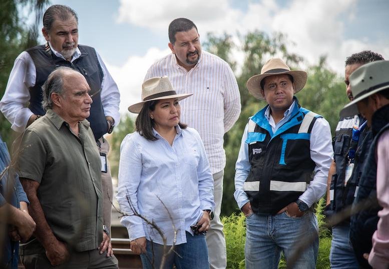 La presidenta municipal de El Marqués, Claudia Martínez Guevara, encabezó el recorrido de supervisión del saneamiento del Río Querétaro y verificar las descargas de la planta tratadora ubicada en el Socavón y los drenajes sanitarios.