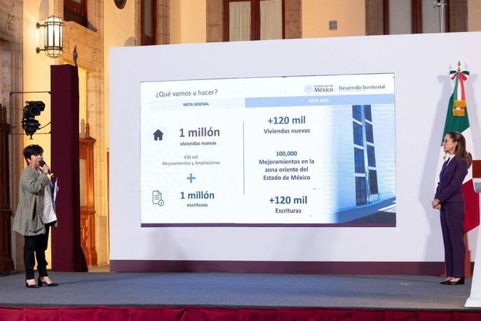 La titular de la Secretaría de Desarrollo Agrario, Territorial y Urbano (SEDATU), Edna Elena Vega Rangel, recordó que el programa Vivienda para el Bienestar contempla la construcción de un millón de viviendas en los próximos seis años: 500 mil a través de Infonavit para derechohabientes y 500 mil para no derechohabientes por medio de la Comisión Nacional de Vivienda (Conavi), así como la regularización de un millón de escrituras.