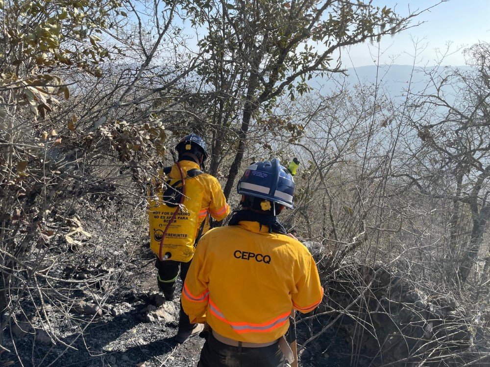 Luego de las acciones de ataque al fuego y contención de su avance, se realizaron labores de ampliación de brechas cortafuego, sofocación de puntos humeantes y de calor detectados mediante recorridos a pie tierra, además de ventilación en zonas afectadas, como parte de las actividades del operativo interinstitucional coordinado por la CEPCQ.
