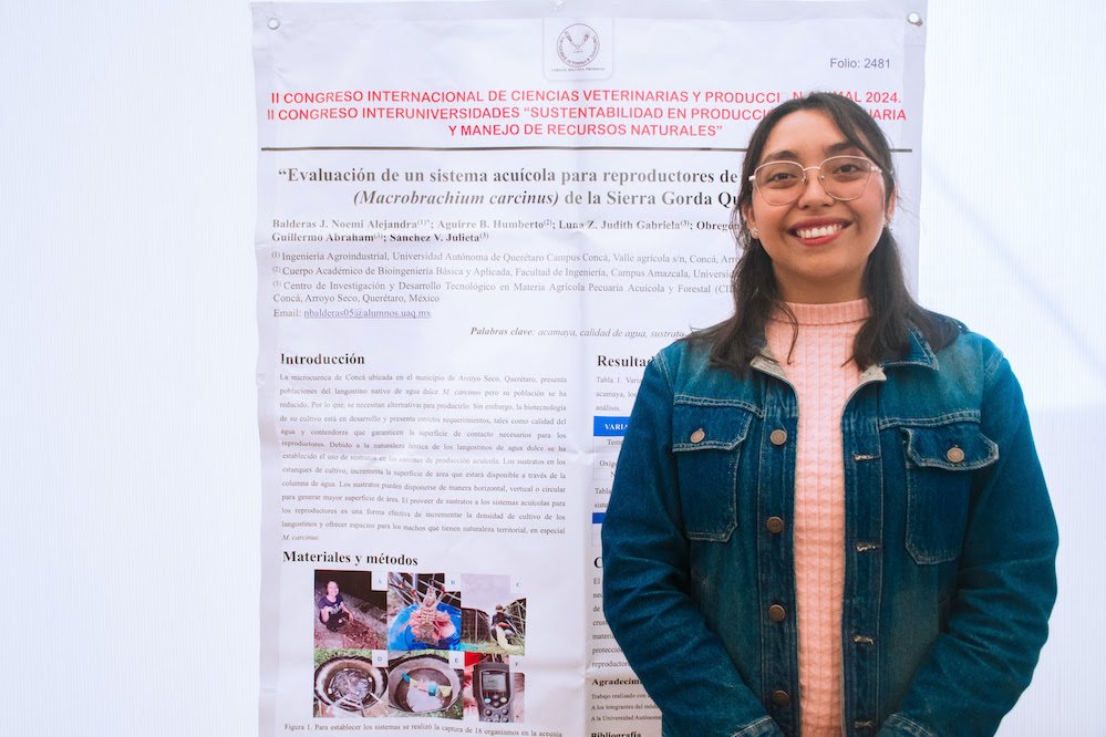 La investigación desarrollada por Noemí Alejandra Balderas Juárez, egresada de Ingeniería Agroindustrial (FI) de la Universidad Autónoma de Querétaro (UAQ) campus Concá, se ha convertido en una iniciativa clave para la preservación de la acamaya nativa (Macrobrachium Carcinus) en la Sierra Gorda. Esta tarea fue financiada por el Fondo de Proyectos Especiales de Rectoría (Foper), el cual tiene como objetivo apoyar acciones innovadoras en diversas áreas del conocimiento.