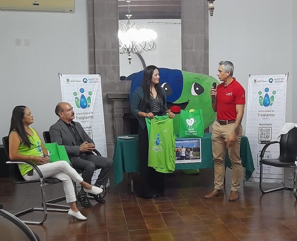 Representantes del Centro Estatal de Trasplantes de Querétaro (CETQro) de la Secretaría de Salud (SESA) del estado de Querétaro (SESA), en el marco de la “XXII Semana Estatal de Donación y Trasplantes Querétaro 2024, realizaron la entrega de playeras deportivas a nueve atletas trasplantados que correrán en el Querétaro Maratón 2024.