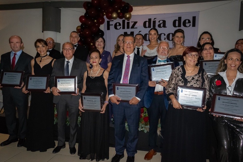 Pérez Rendón realizó un especial reconocimiento a las y los médicos que fueron homenajeados por sus años de servicio y enfatizó que su entrega y dedicación han sido fundamentales para fortalecer el sistema de salud del nuestro estado. Coordinó las actividades el presidente del Colegio Médico de Querétaro, Rodrigo Miguel González Sánchez.