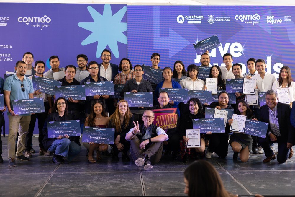 En el marco de la Jornada Contigo Rumbo Joven, realizada en las instalaciones de la Universidad Tecnológica de Querétaro (UTEQ), la secretaria de la Juventud (SEJUVE), Virginia Hernández Vázquez, encabezó la premiación del programa “Emprendiendo Contigo 2024”, cuyo objetivo es apoyar a jóvenes emprendedores para la aceleración y formalización de sus emprendimientos, de este modo fueron seleccionados 30 proyectos que recibieron capital semilla consistente en 40 mil pesos.
