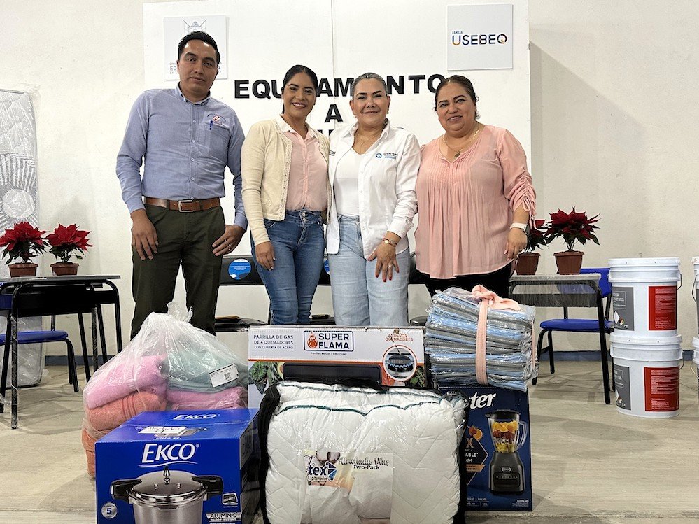 Con el propósito de apoyar la permanencia en la escuela de las niñas, niños y adolescentes de escasos recursos, que viven en las comunidades más apartadas y marginadas, la coordinadora general de la Unidad de Servicios para la Educación Básica en el Estado de Querétaro (USEBEQ), Irene Quintanar Mejía, entregó equipamiento a nueve albergues escolares de la sierra gorda en favor de 300 alumnas y alumnos.