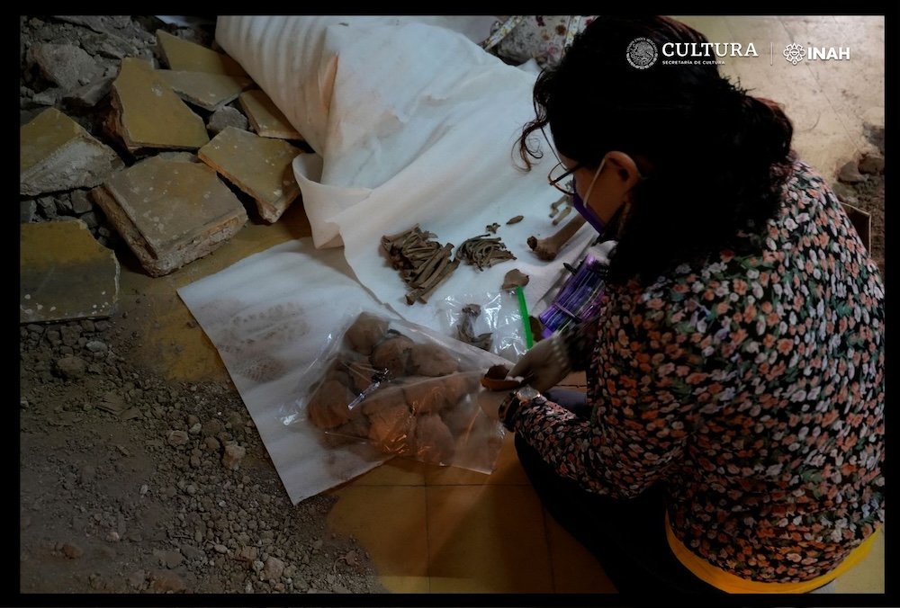 La recuperación de los materiales óseos estuvo a cargo de la arqueóloga Baudelina Lydia García Uranga y la antropóloga física Lilian Ivette García Maya, así como de los restauradores Josué Israel Moreno Fraga y Miriam Jazmín Pineda Bravo.
