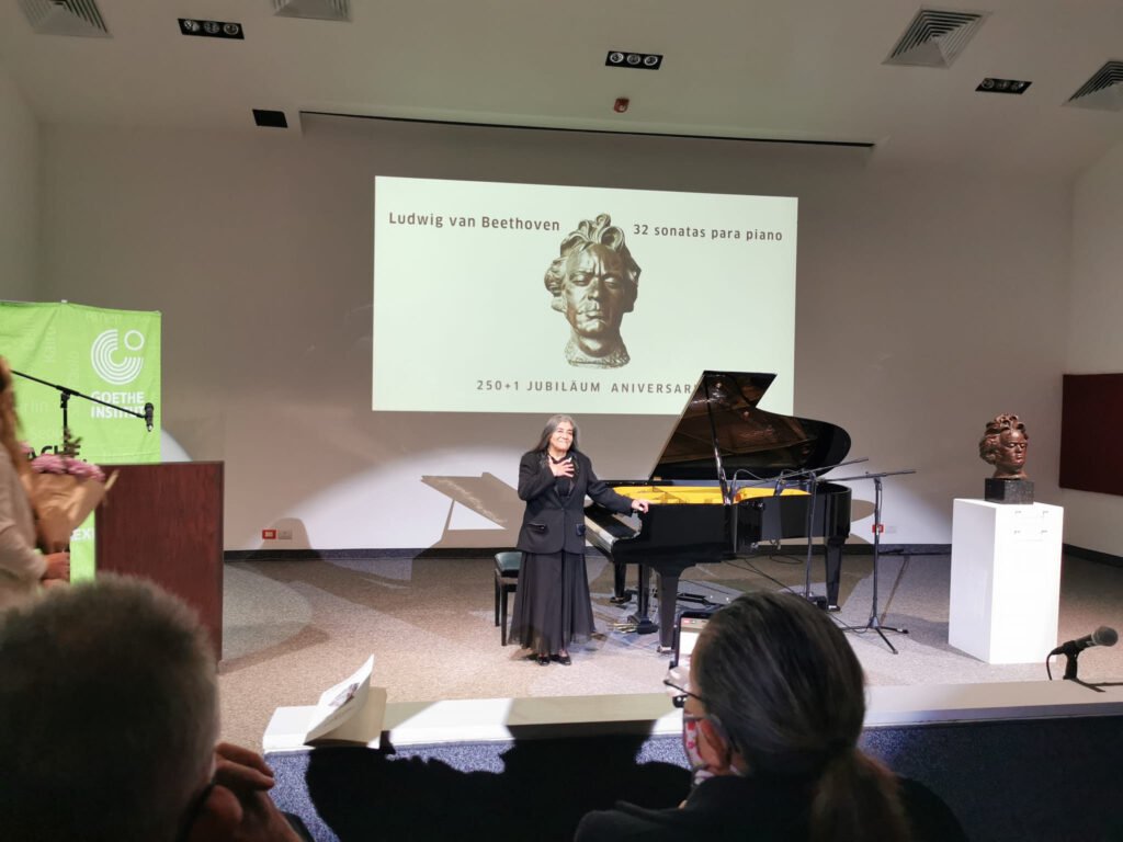 La concertista ha sido ganadora de importantes concursos internacionales de piano en Francia, Uruguay, España, Suiza y Venezuela.