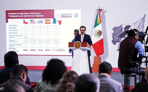 El director general del IMSS presentó un comparativo de países en los que se han presentado regulaciones para personas trabajadoras de plataformas; por ejemplo, en Chile la afiliación a la seguridad social es voluntaria pero si quiere añadir a sus familiares debe dar un pago adicional; en Estados Unidos no se ofrece un fondo de vivienda y la cobertura médica es un programa básico que se enfoca en lo preventivo; en España y Uruguay apenas se han afiliado a 15 mil y 60 mil personas, respectivamente.