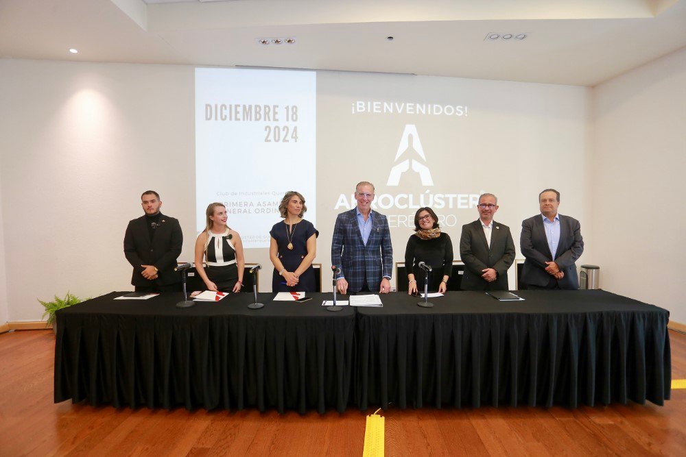 El secretario de Desarrollo Sustentable, Marco Antonio Del Prete Tercero, encabezó la toma de protesta al Consejo Directivo del Aeroclúster para el periodo 2024-2026, organismo que estará encabezado por Jatziri Barrios Porras, quien fungirá como presidenta.