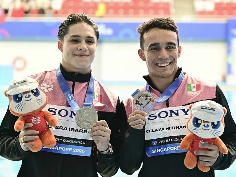 El mexicano Osmar Olvera tuvo que conformarse, una vez más, con la medalla de plata en los Mundiales de Singapur, tras concluir este lunes, formando pareja con Juan Manuel Celaya, en segunda posición la final de saltos sincronizados desde trampolín de 3 metros.