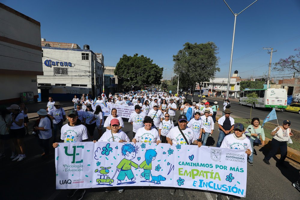 La rectora de la Universidad Autónoma de Querétaro (UAQ), Dra. Silvia Amaya Llano, participó en la “Caminata para la Concientización del Autismo”, una iniciativa impulsada por la Central de Servicios a la Comunidad (Ceseco) de la Facultad de Psicología y Educación (FΨE). Esta actividad tuvo como propósito generar reflexión, visibilizar la realidad del trastorno del espectro autista (TEA) y destacar que se presenta en todas las etapas de la vida.