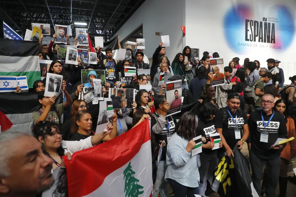 EFE / Periodistas y estudiantes de periodismo se manifestaron este jueves en la Feria Internacional del Libro (FIL) de Guadalajara, la mayor del mundo en español, contra el conflicto entre Israel y Palestina, y para pedir justicia por el asesinato de las y los periodistas asesinados en la región.