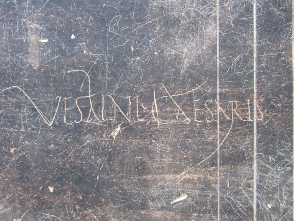 En el ‘Salón Negro’, por ejemplo, escribieron sus nombres un tal Silvanus y Valerius, este último junto a la representación de seis líneas verticales y de un falo, figura omnipresente en Pompeya que se dibujaba para atraer a la suerte o para ofender.