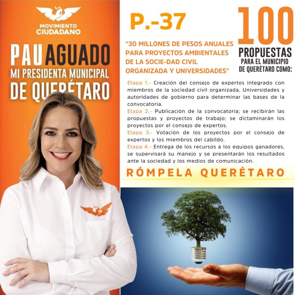 La candidata de Movimiento Ciudadano a la presidencia municipal de Querétaro, Paulina Aguado Romero, asistió a un foro con ambientalistas queretanos, donde presentó sus propuestas encaminadas a cuidar el planeta y el ecosistema local. La mesa de honor estuvo conformada por Izarelly Rosillo Pantoja, Manuel de Anda Garduño, América Vizcino Sahagún, Enrique Uribarren Castro, Manuel Avalos Castañeda, ambientalistas de la entidad.