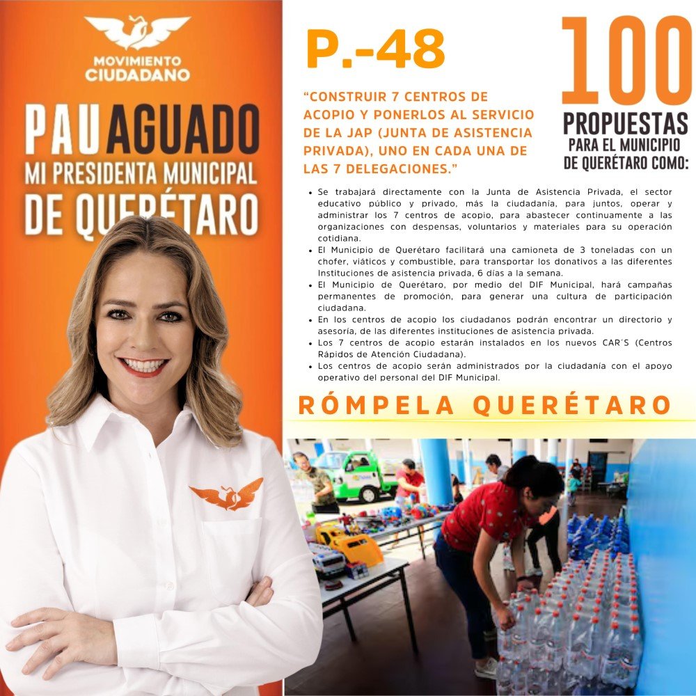 Paulina Aguado Romero, candidata a presidenta municipal de Querétaro por Movimiento Ciudadano, presentó su propuesta número 48.