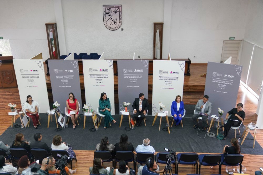 En el marco del proceso electoral federal 2023-2024, la Universidad Autónoma de Querétaro (UAQ) y el Instituto Nacional Electoral (INE) realizaron el primer debate y presentación de propuestas entre las personas candidatas que buscan un escaño en el Senado de la República, primera fórmula.