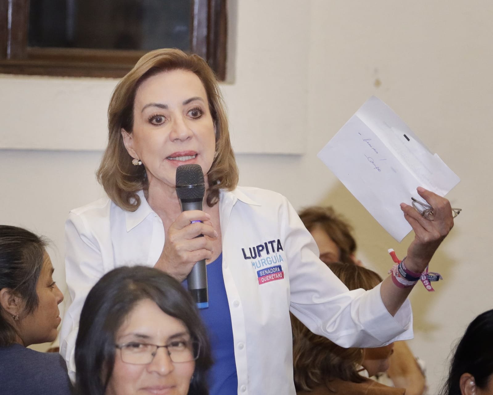 Quienes se dieron cita en el aeródromo de la entidad aprovecharon para dar muestras de su apoyo rumbo a las próximas elecciones del 2 de junio con abrazos, carteles, así como algunos obsequios como una blusa con bordados tradicionales.