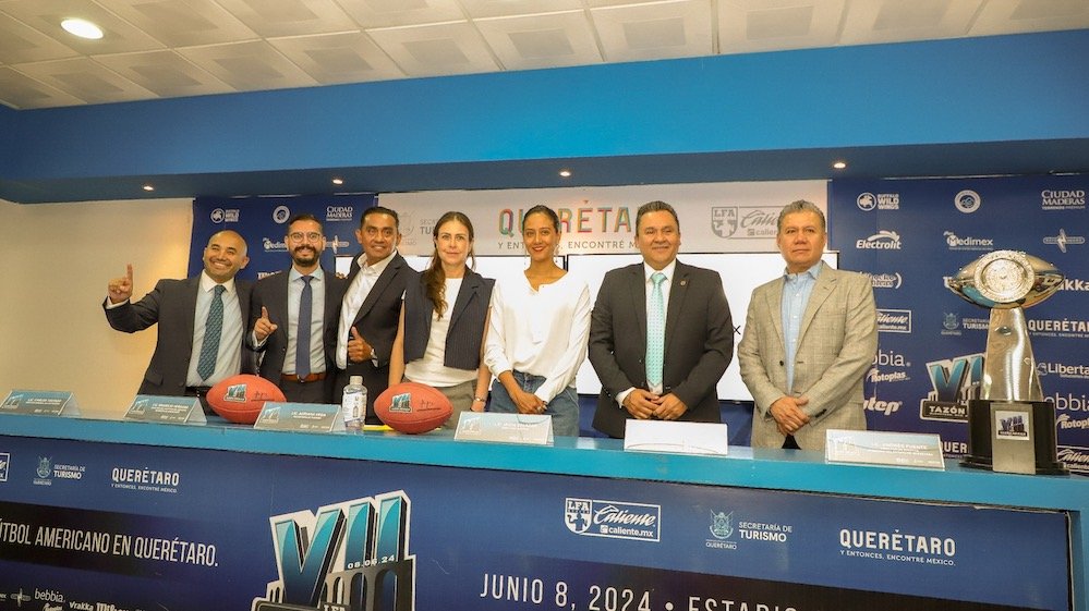 El próximo 8 de junio el Estadio La Corregidora de Querétaro será sede del “Tazón México”, el partido final de la Liga de Futbol Americano (LFA), donde se espera una afluencia de más de 20 mil aficionados y una derrama económica de entre 35 y 40 millones de pesos para la ciudad capital, así lo dieron a conocer autoridades estatales, directivos de la liga y del equipo queretano “Gallos Negros”.