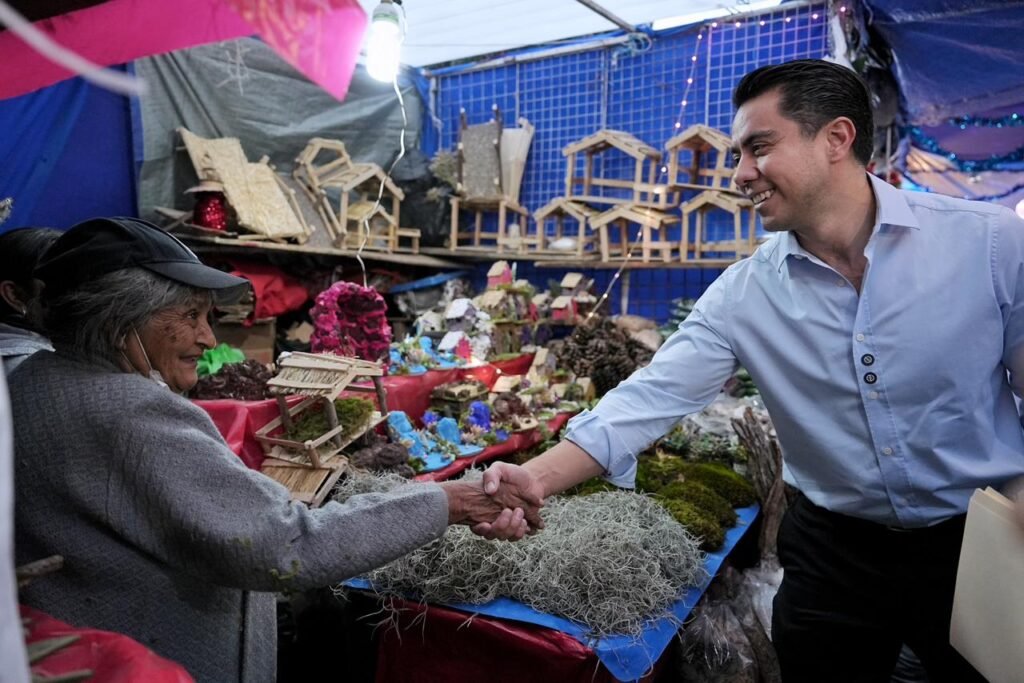 En compañía de la dirigente de la Federación de Comerciantes, Locatarios Establecidos y Prestadores de Servicios A.C. (FECOPSE), Rocío Alvarado Ramírez; de la presidenta de la Unión de Tianguis Navideño y Festividades, Esther Almaraz Espinosa; de funcionarios municipales, estatales y de familias queretanas que acudieron a hacer sus compras, Felifer Macías realizó un recorrido por el tianguis en donde ya se ofrecen todos los productos de temporada.