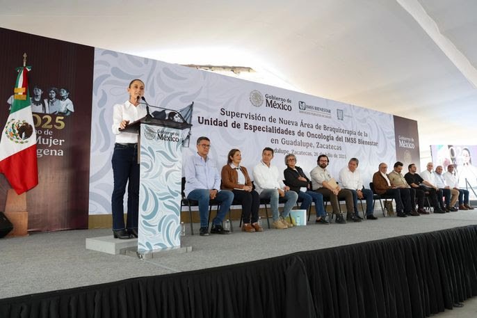 “Vamos a destinar cerca de 21 mil millones de pesos para lo urgente desde 2025, otra parte en 2026 y el resto en 2027, de tal manera que el sistema IMSS Bienestar esté totalmente completo”, señaló la mandataria tras supervisar la obra de la nueva área de braquiterapia de la Unidad de Especialidades de Oncología del IMSS Bienestar en Guadalupe, Zacatecas.