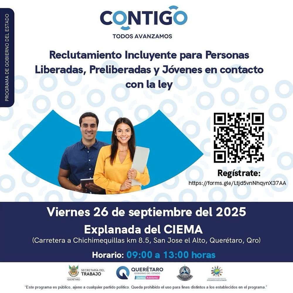 La Secretaría del Trabajo en colaboración con la Comisión Estatal del Sistema Penitenciario y el Centro de Internamiento para Adolescentes, anuncian el reclutamiento incluyente mediante el cual se acercarán ofertas de empleo a personas liberadas, preliberadas y jóvenes en contacto con la ley, así como para familiares en búsqueda de empleo, el cual se llevará a cabo el próximo 26 de septiembre en las instalaciones del CIEMA en horario de 9:00 a 13:00 horas.