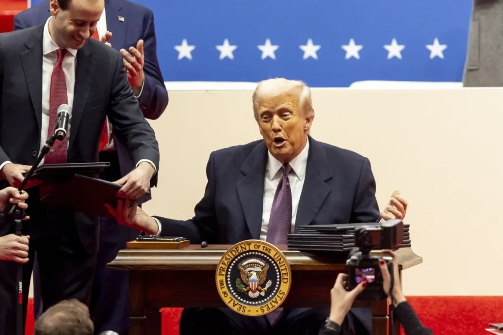 La orden, firmada en su primer día en el poder y desde el Despacho Oval, ordena al Departamento de Defensa a desplegar personal -incluyendo soldados y Guardia Nacional- para “asegurar la frontera” y repeler “formas de invasión”, incluyendo la migración hacia EE.UU. y el tráfico de drogas, según indicaron funcionarios de la nueva Administración en una llamada con reporteros.