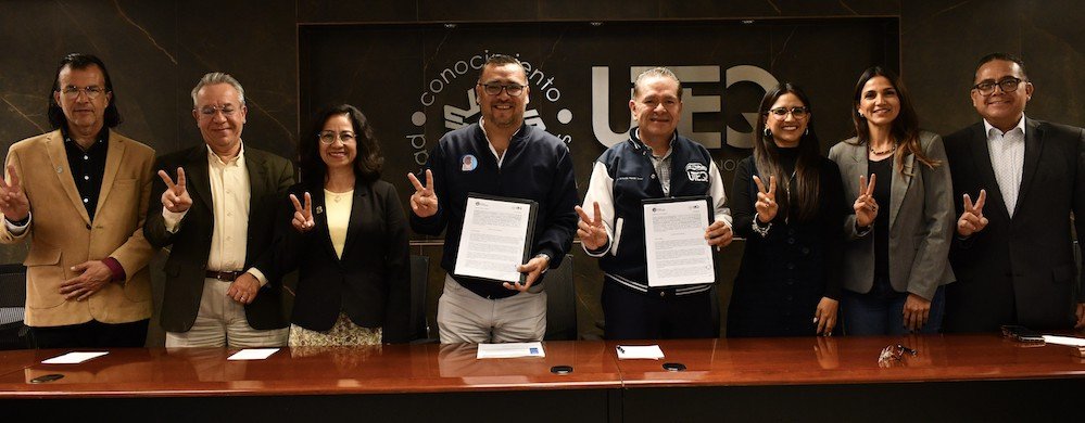 El rector de la Universidad Tecnológica de Querétaro (UTEQ), Luis Fernando Pantoja Amaro, y el director general del Colegio de Bachilleres del Estado de Querétaro (COBAQ), León Enrique Bolaño Mendoza, firmaron un convenio de colaboración para que las y los estudiantes de preparatoria cuenten con las herramientas y conocimientos que acompañen su decisión de continuar sus estudios hacia la universidad.