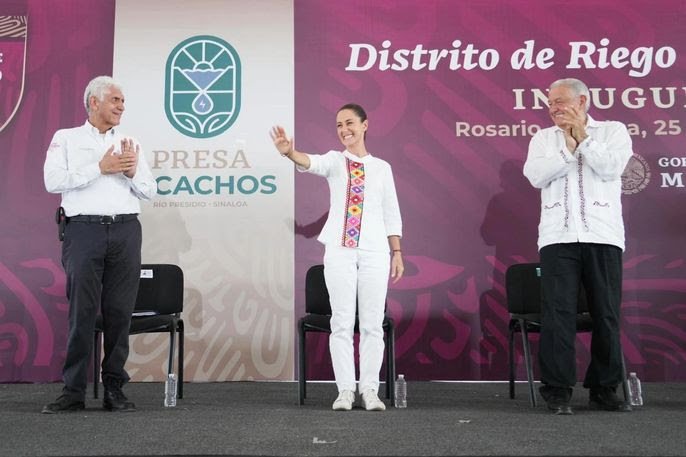 ’’Vamos a seguir apoyando a Sinaloa, porque a Rubén Rocha ya le tocaron tres años con el Presidente, pues ahora le van a tocar tres años con la Presidenta y vamos a seguir colaborando en todo lo que requiera Sinaloa’’, aseguró Claudia Sheinbaum, Presidenta electa de México, durante la inauguración del Distrito de Riego de la Presa Picachos, encabezada por el Presidente Andrés Manuel López Obrador.