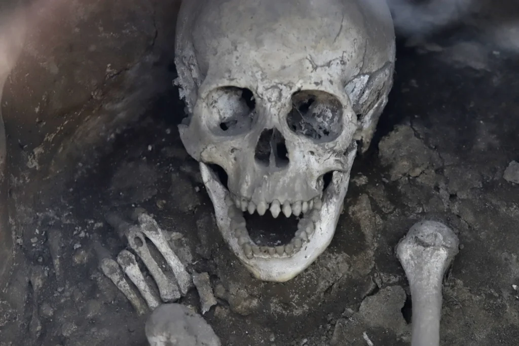 Mientras que la segunda osamenta yace en posición de feto, con la columna y el cráneo completos.